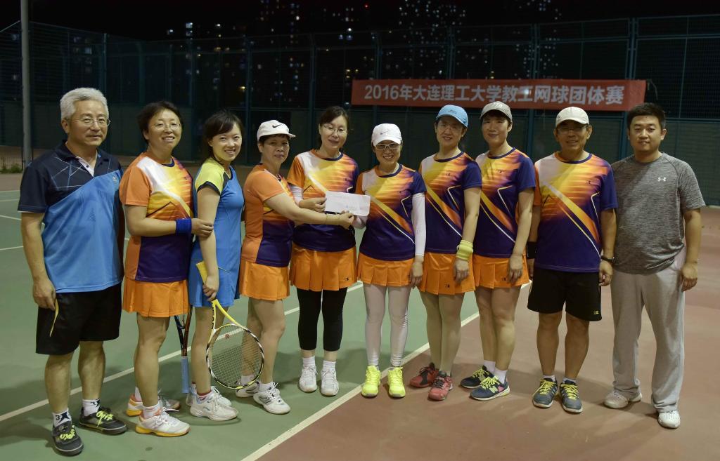 我校教工网球男女团体赛于7月2日、7月16日分别在西校区网球场圆满结束。机关男女代表队,战胜强劲的对手双双获得冠军。 机关男子网球队:李俊杰、冯振业、刘爽、孙金伟、宋飞、刁广水、郑庆信、刘扬、郑中兴。 机关女子网球队:郑玲、张建红、李宏伟、李明晖、刘小琳、关佳茹、王新、翟鸣宇、尹蕾。
